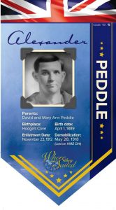 Son of David and Mary Ann (Benson) Peddle Birthplace: Hodge’s Cove Birth Date: April 1, 1889 Enlistment Date: November 23, 1912 Demobilization: May 28, 1918 (Lost on HMS Dirk) |
