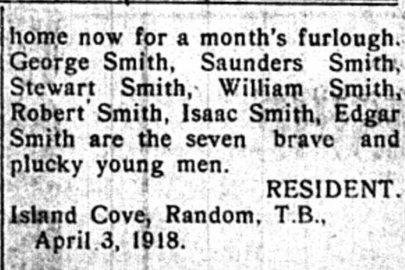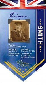 Son of Simon and Maria (Whalen) Smith Birthplace: Island Cove Birth Date: September 20, 1895 Enlistment Date: March 18, 1914 Demobilization: November 12, 1918 (Lost on the Ketch Trebiskin) |