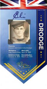 Son of Eleazer and Cassandra (Baker) Drodge Birthplace: Little Heart’s Ease Birth Date: April 24, 1891 Enlistment Date: October 8, 1914 Demobilization: March 22, 1919 |