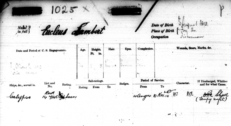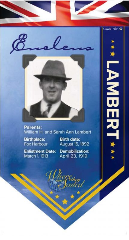 | Son of William H. and Sarah Ann Lambert Birthplace: Fox Harbour Birth Date: August 15, 1892 Enlistment Date: March 1, 1913 Demobilization: April 23, 1919 |