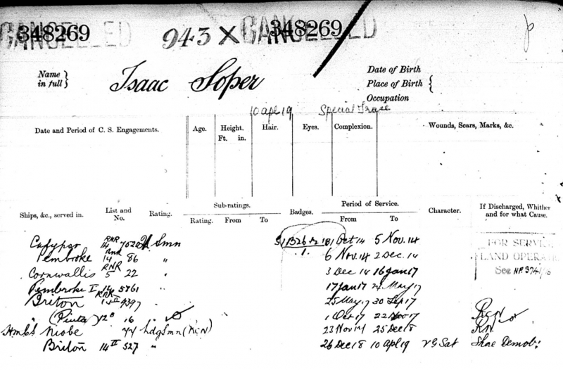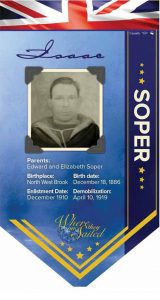 Son of Edward and Elizabeth (Benson) Soper Birthplace: Little Heart’s Ease Birth Date: December 18, 1886 Enlistment Date: December 1910 Demobilization: April 10. 1919 |