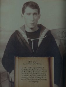 Mark Green was born in St. Jones Without on September 22, 1897 to Samuel and Lydia (Seward) Green. Naval records indicate that he enlisted on August 27, 1917. However, the family list his enlistment in 1914. Family history records that Mark spent time on a hired drifter called Renown in 1916 during the time that the ship was torpedoed and he was thrown into the waters. He was located and transported to an hospital in France, where he recovered. His Naval Service Ledger shows he returned overseas near the end of December of 1917 and was assigned to the SS Macfarlene as an Attentive on January 1, 1918 where he spent a full year at this position.