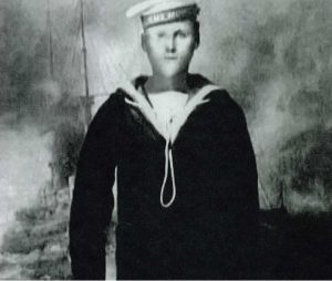 His ship’s ledger records that his naval career began on September 26, 1917, at the HMS Briton where he spent three months training. He was transported overseas and assigned to the HMS Vivid III Royal Naval Division, a shore-based structure at Devonport. He spent six months at this facility and was likely assigned to one of the King’s trawlers.