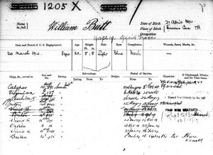 Seaman William John Butt spent the fall of 1917 at the home serving at the HMS Briton. He returned overseas and reported to HMS Vivid III where he spent the next year likely serving on patrol ships and minesweepers. Records show that on October 15, 1918 he was assigned to the HMS Orbita, an Armed Merchant Cruiser. By January 1919 he was re-assigned back to the Vivid III and awaited his orders for returning home.