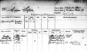 Church records list Edgar Soper birth as November 7, 1897 and his birthplace as being House Cove. His parents are listed as Owen and Louisa Soper. However, his Naval engagement papers list his birth as date as December 15, 1896 at North West Brook. His family first lived at House Cove before moving to North West Brook.