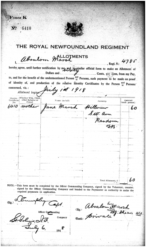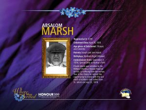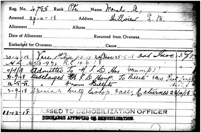Son of Joseph and Mary (Hyde) Marsh Birthplace: Northern Bight Birth Date: December 25, 1899 Enlistment Date: April 29, 1918 |