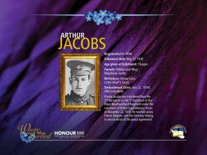 Son of William Henry and Mary Magdelina (Avery) Jacobs Birthplace: House Cove Birth Date: 1899 Enlistment Date: May 11, 1918 Embarkment Date: July 22, 1918 |