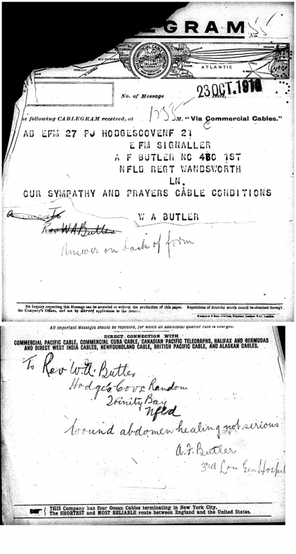 This telegram was followed by one from Private Butler on Oct. 23.
