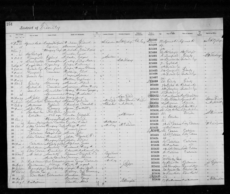 His death by drowning was confirmed by Dr. Chisholm and attending clergyman, A. Abbott. He was buried in the Methodist Church cemetery at Ferry’s Cove, St. Jones Without.