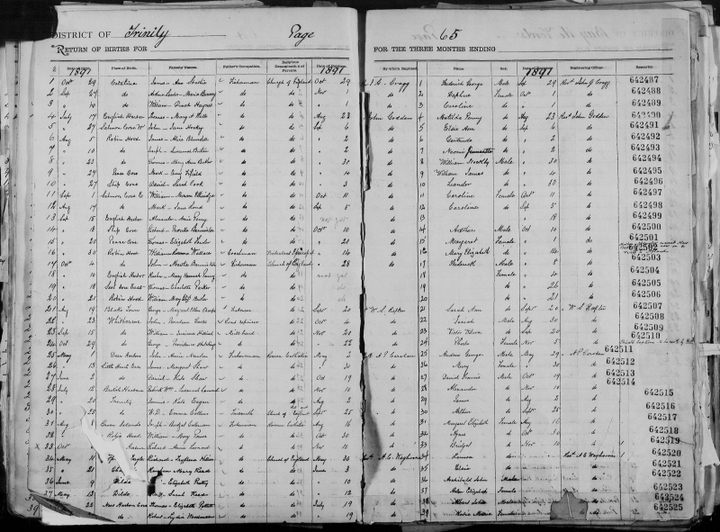 July 30, 1893 | Heart’s Ease | SEWARD | Enoch & Elizabeth | Fisherman | Church of England | October 1, 1893 | ? | Margaret Ann | F |