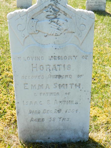 Smith | Horatis | Dec. 24, 1904 | 58 years | In loving memory of. Beloved husband of Emma Smith and father of Isaac & Arther. |