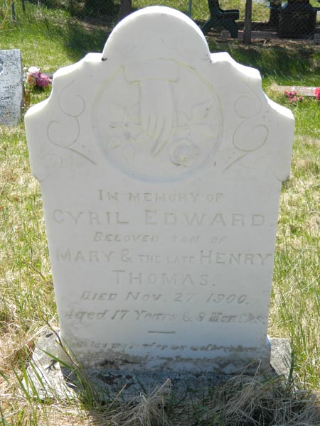 Thomas | Alfreda | Jan. 31, 1896 | 14 yrs. | Child of Henry and Mary Ann Thomas. | |