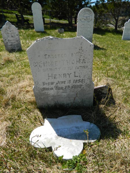 Thomas | Henry L | June 15, 1856 | Feb. 14, 1897 | Erected by George Thomas in memory of his father. | |