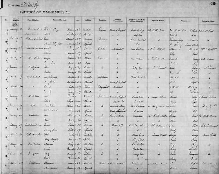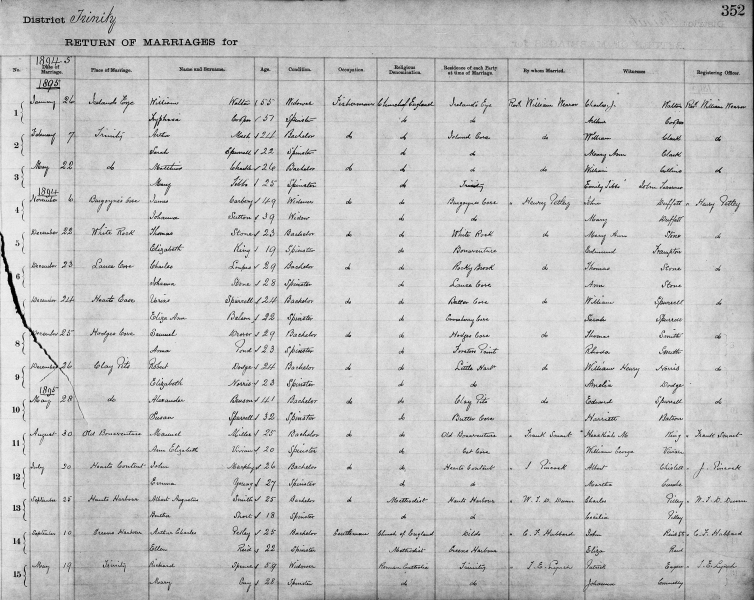 | Newfoundland Vital Statistics 1840-1899 Volume 2 Trinity District Marriages 1892-1897 |