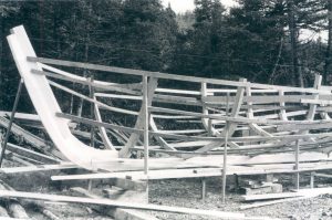 “It takes about five weeks to complete a boat to the cabin and wiring stage. The time spent cutting wood is on top of that. Last winter we built six boats, two late in the spring, which drove me up the wall. You have to have the crooked timber and I cut all my own wood except for plywood and pine for cabins. This is a good time of year to sell a boat. Sometimes fishermen wait until January to decide to have a boat built. They should start earlier in the fall and decide the size they need. I have to go in the woods now to get boat frames, timbers and planks, and I would like to know what to cut. I like to have dry timber and dry planks to work with.”