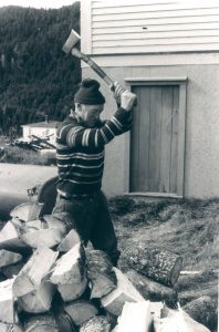 “I cut three or four cords each winter. It’s cheaper than oil or electricity and it gives me something to do,” he acknowledges now that the short fishing season is over.