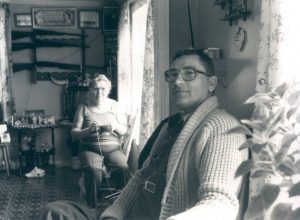 “This place goes back about 70 years,” says George showing us his home. “I bought it in 1951 for $350 from some people who were resettled from St. Jones Without. I went there, took it down, and rebuilt it here. What I’m looking at now is all antique. Take those doors,” he says, pointing to some nicely painted, panelled doors, “This day and age with the money people have on the go, they don’t have these doors. They chuck them out in the garbage.”