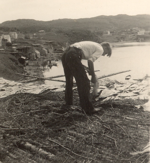 The stages reminded me of my childhood days spent on my father’s stagehead at Little Heart’s Ease. We passed many hours catching tomcods and cunners using fish hearts for bait and a bamboo fishing pole. The more adventurous among us would try stabbing flatfish with the prong, often extended by attaching a stick. Sometimes I leaned too far out and fell into the saltwater surrounding the wharf!