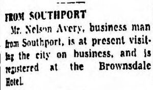 Mr. Nelson Avery, business man from Southport, is at present visiting the city on business, and is registered at the Brownsdale Hotel.