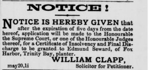In the matter of the petition of Edmund Seward, of Fox Harbor, Trinity Bay, Planter, praying to be declared Insolvent.