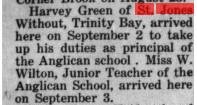 ADEY-DRODGE – On Tuesday, December 12th, by Rev. W.R. Butler, at the United Church Adeytown, Trinity Bay, Dorothy Louisa, only daughter of Mr. and Mrs. Simeon Wesley, to Cyril, son of the late Mr. and Mrs. Jacob Drodge, of Little Heart’s Ease.