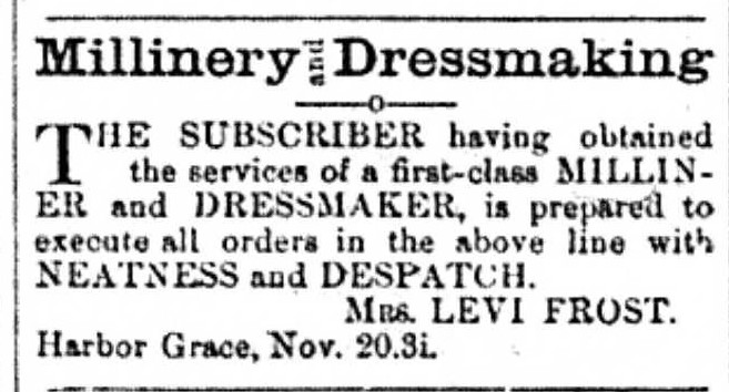 The subscriber having obtained the services of a first-class milliner and dressmaker, is prepared to execute all orders in the above line with neatness and despatch.