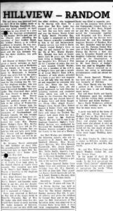 Mr. Alex Crosbie St. John’s was a visitor to Hillview recently and was the guest of Mr. and Mrs. Ben Smith.
